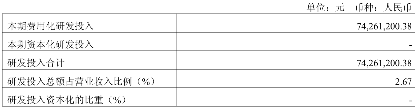 2025年全年,公司研发投入金额为7426.12万元,同比增长18.86%;研发投入占营业收入比例为2.67%,相比上年同期下降0.22个百分点。此外,公司全年研发投入资本化率为0%。