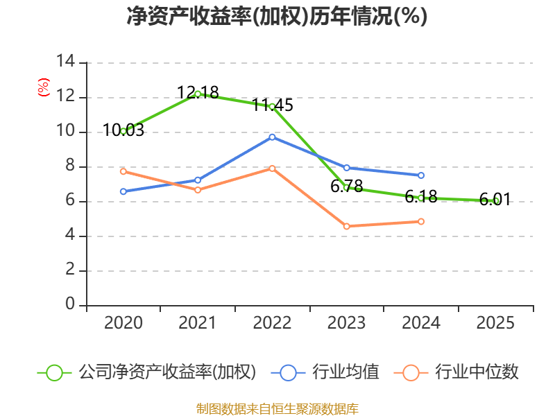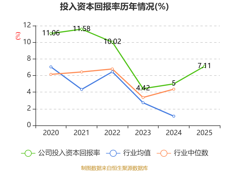 数据显示,2025年公司加权平均净资产收益率为6.01%,较上年同期下降0.17个百分点。公司2025年投入资本回报率为7.11%,较上年同期上升2.11个百分点。