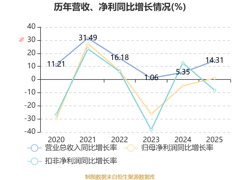 负债重大变化方面,截至2025年末,公司合同负债较上年末增加32.13%,占公司总资产比重上升0.82个百分点;短期借款较上年末减少1.44%,占公司总资产比重下降0.71个百分点;其他应付款(含利息和股利)较上年末减少13.89%,占公司总资产比重下降0.45个百分点;应付票据及应付账款较上年末增加8.09%,占公司总资产比重上升0.42个百分点。