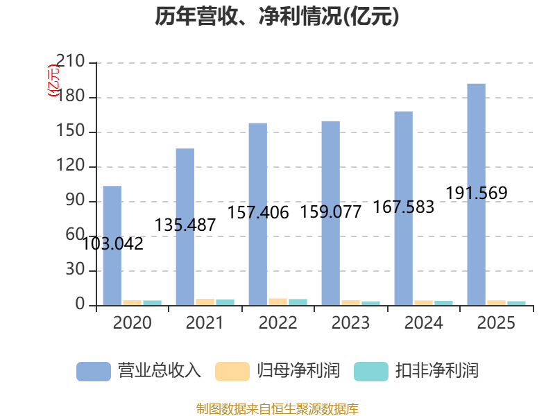 中证智能财讯星网锐捷(002396)3月28日披露2025年年度报告。2025年,公司实现营业总收入191.57亿元,同比增长14.31%;归母净利润4.09亿元,同比增长1.05%;扣非净利润3.3亿元,同比下降8.12%;经营活动产生的现金流量净额为20.91亿元,同比增长532.55%;报告期内,星网锐捷基本每股收益为0.7059元,加权平均净资产收益率为6.01%。公司2025年度分配预案为:拟向全体股东每10股转3股,派现2.5元(含税)。