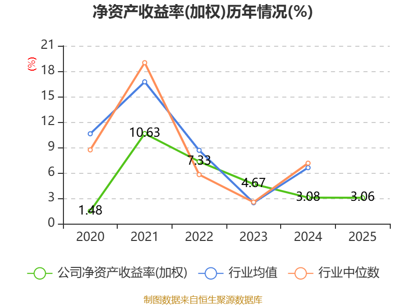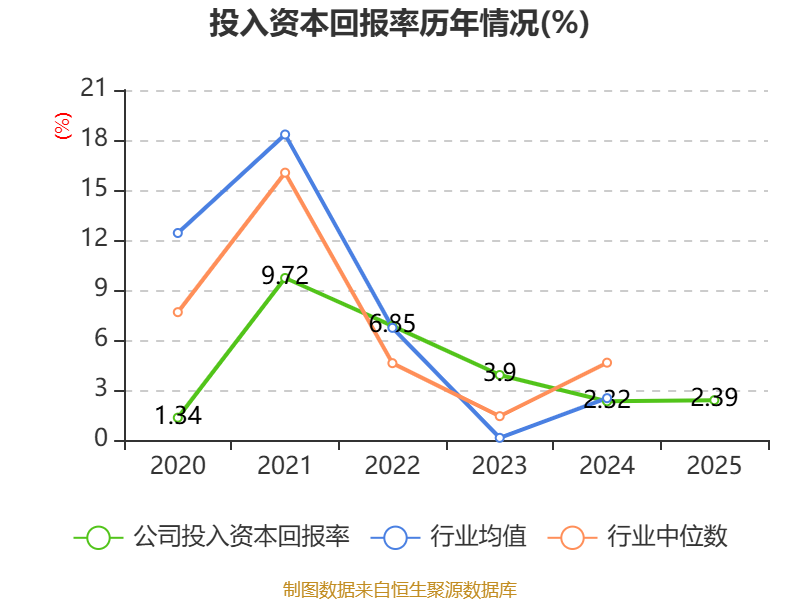 数据显示,2025年公司加权平均净资产收益率为3.06%,较上年同期下降0.02个百分点。公司2025年投入资本回报率为2.39%,较上年同期上升0.07个百分点。