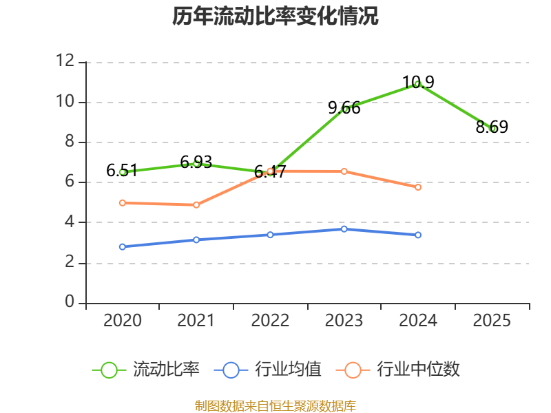 2025年,公司流动比率为8.69,速动比率为5.72。
