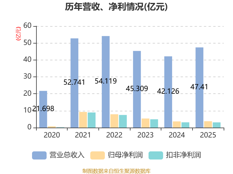 中证智能财讯北京君正(300223)3月28日披露2025年年度报告。2025年,公司实现营业总收入47.41亿元,同比增长12.54%;归母净利润3.76亿元,同比增长2.74%;扣非净利润3.09亿元,同比下降0.93%;经营活动产生的现金流量净额为6.23亿元,同比增长71.30%;报告期内,北京君正基本每股收益为0.7803元,加权平均净资产收益率为3.06%。公司2025年度分配预案为:拟向全体股东每10股派现1.5元(含税)。