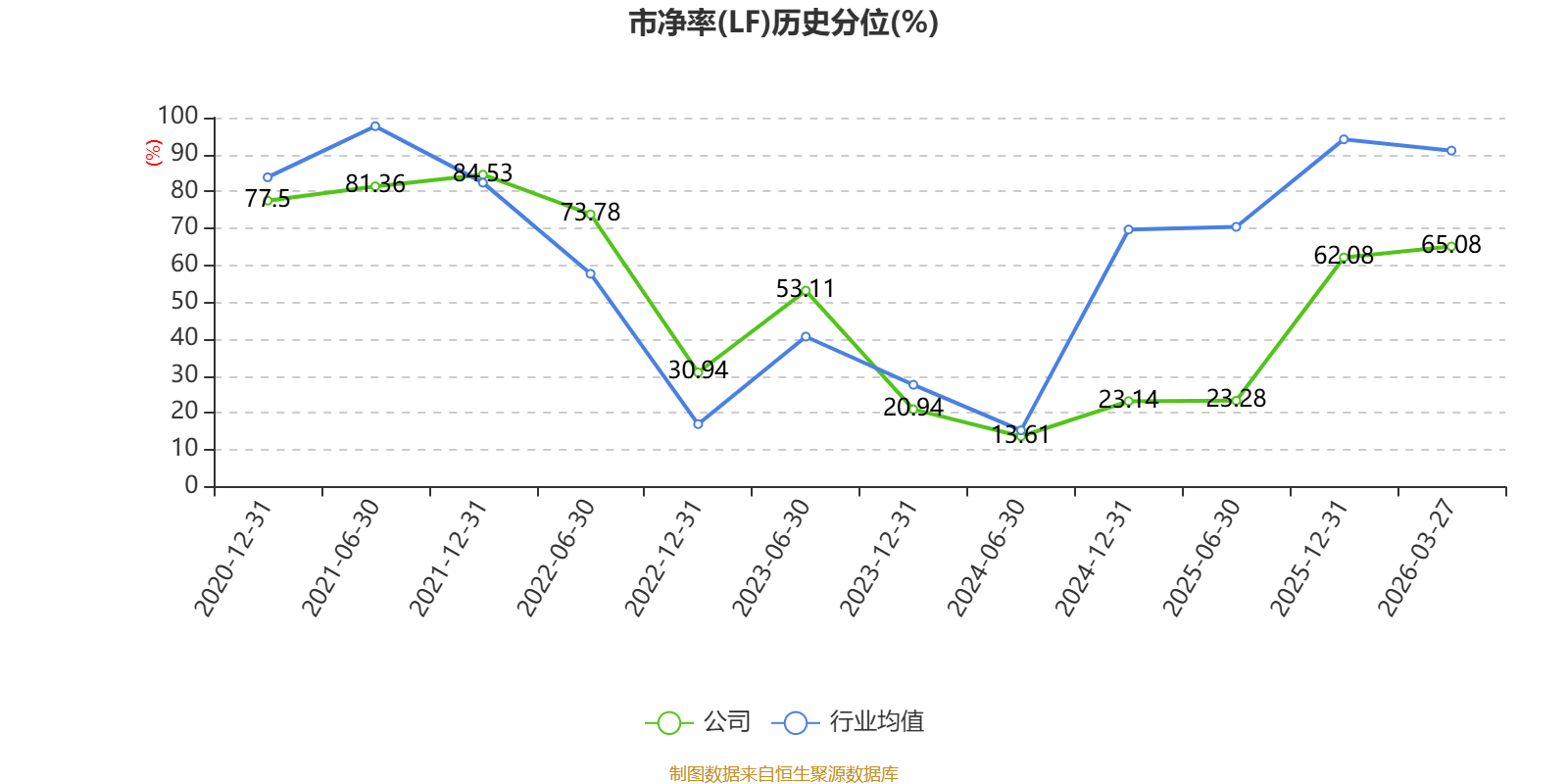 市盈率、市净率为负时,不显示当期分位数,会导致折线图中断。