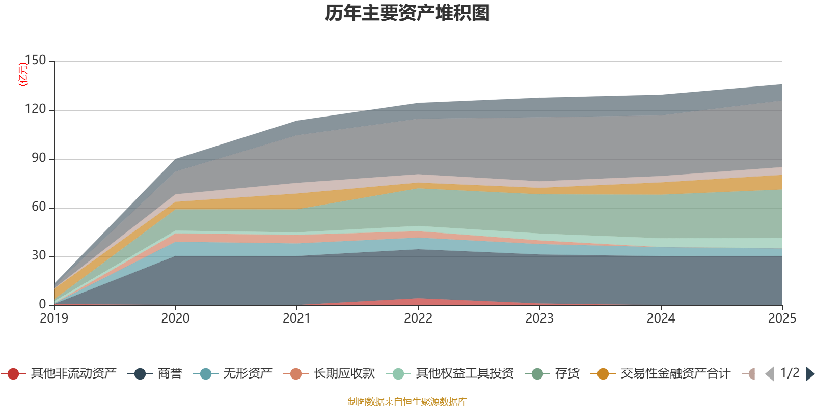 资产重大变化方面,截至2025年末,公司其他应收款(含利息和股利)较上年末减少99.42%,占公司总资产比重下降2.19个百分点;货币资金较上年末增加10.09%,占公司总资产比重上升1.39个百分点;存货较上年末增加11.33%,占公司总资产比重上升1.25个百分点;商誉较上年末没有变化,占公司总资产比重下降1.11个百分点。