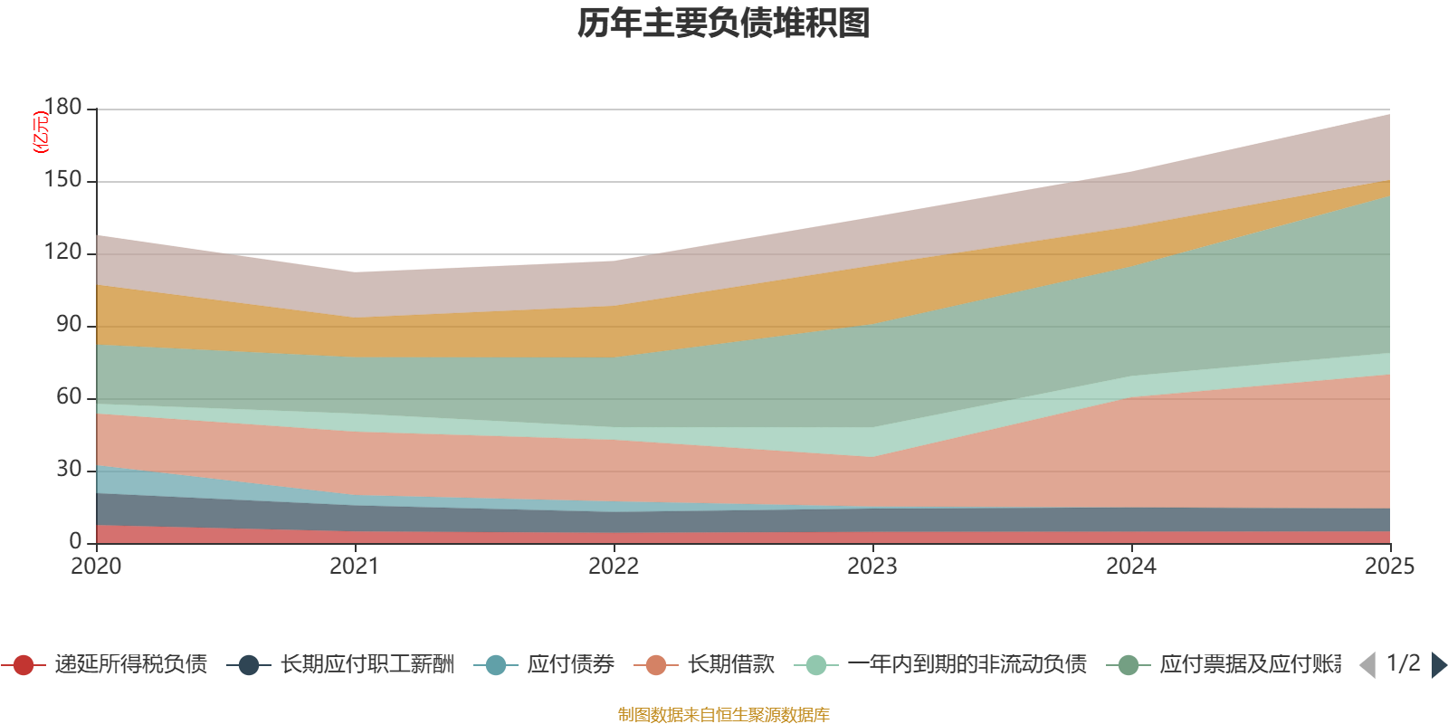 负债重大变化方面,截至2025年末,公司应付票据及应付账款较上年末增加43.54%,占公司总资产比重上升5.47个百分点;短期借款较上年末减少60.04%,占公司总资产比重下降5.34个百分点;长期借款较上年末增加21.57%,占公司总资产比重上升1.22个百分点;长期应付职工薪酬较上年末减少5.28%,占公司总资产比重下降0.88个百分点。