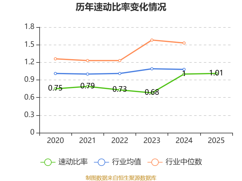 2025年,公司流动比率为1.22,速动比率为1.01。