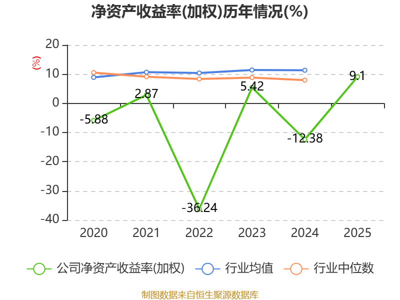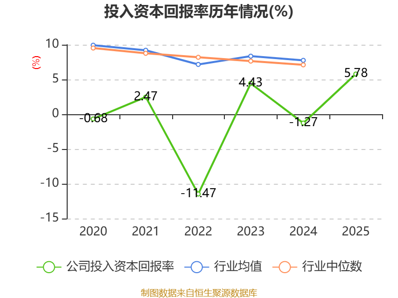 数据显示,2025年公司加权平均净资产收益率为9.1%,较上年同期上升21.48个百分点。公司2025年投入资本回报率为5.78%,较上年同期上升7.05个百分点。