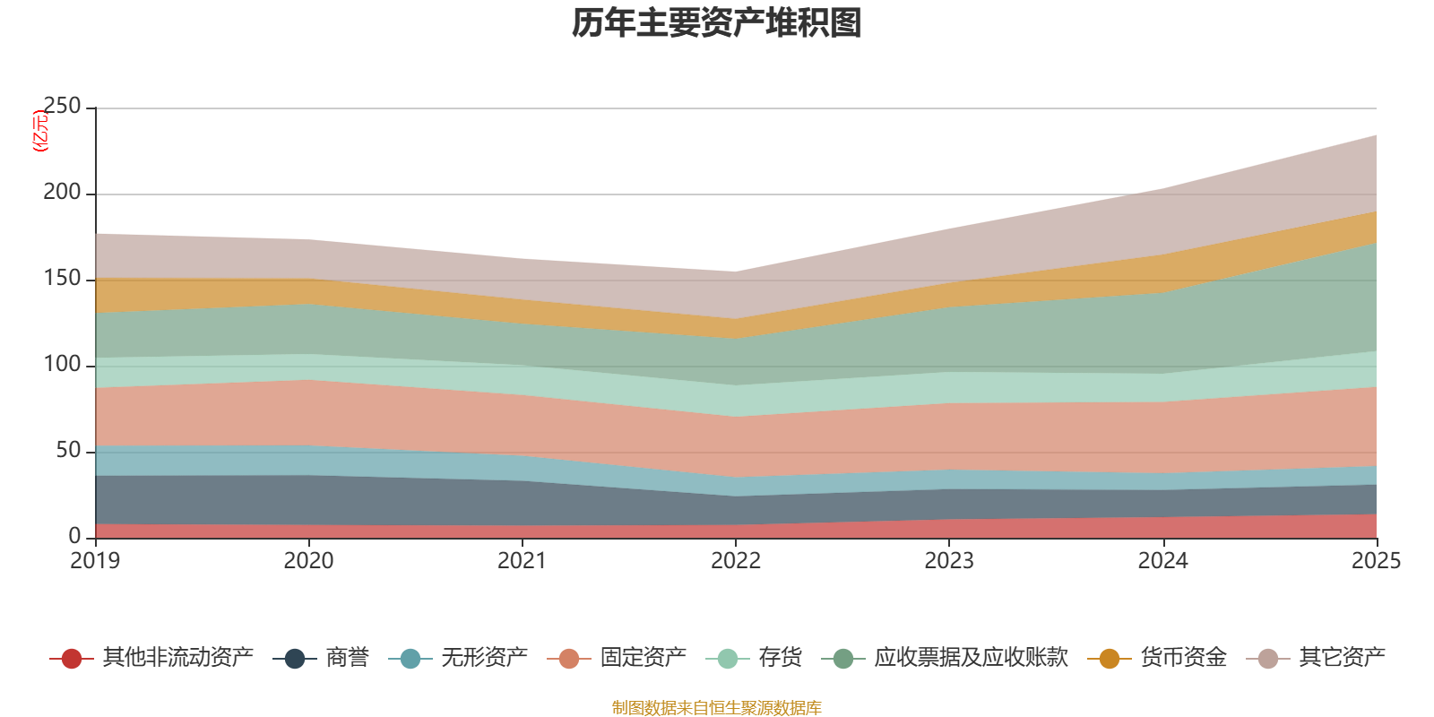 资产重大变化方面,截至2025年末,公司应收票据及应收账款较上年末增加33.82%,占公司总资产比重上升3.71个百分点;货币资金较上年末减少17.64%,占公司总资产比重下降3.13个百分点;存货较上年末增加26.62%,占公司总资产比重上升0.79个百分点;固定资产较上年末增加11.1%,占公司总资产比重下降0.75个百分点。