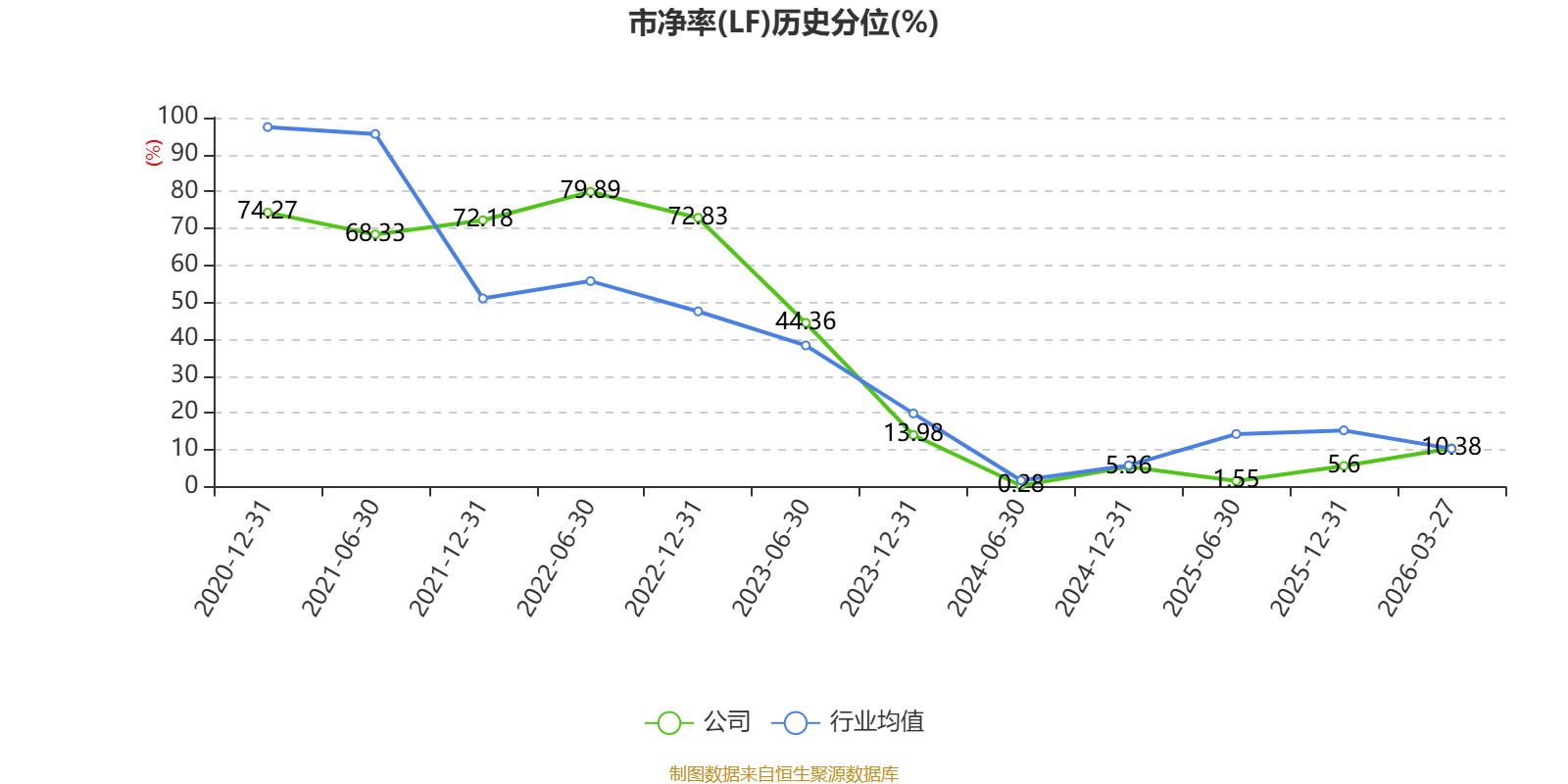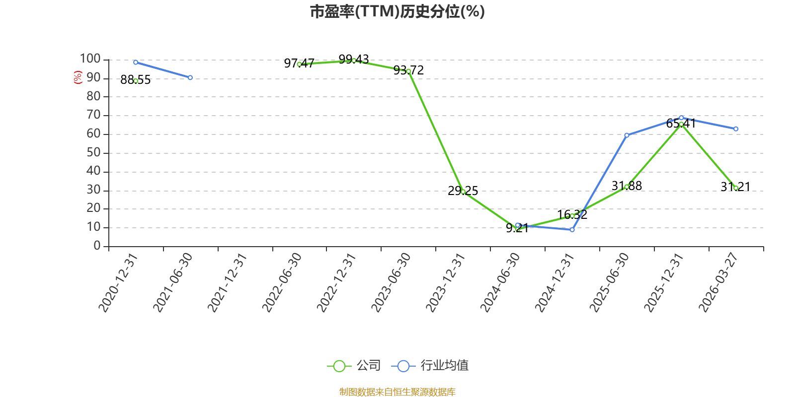 市盈率、市净率为负时,不显示当期分位数,会导致折线图中断。
