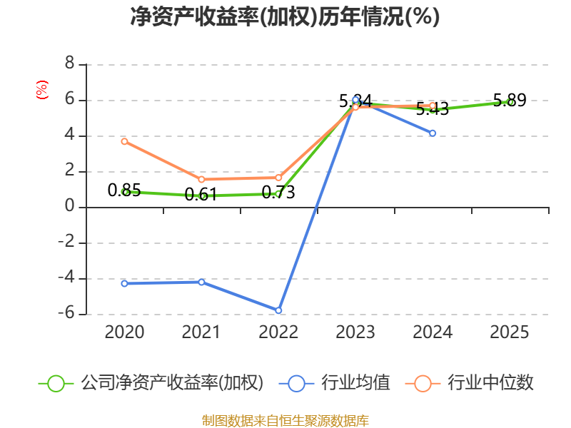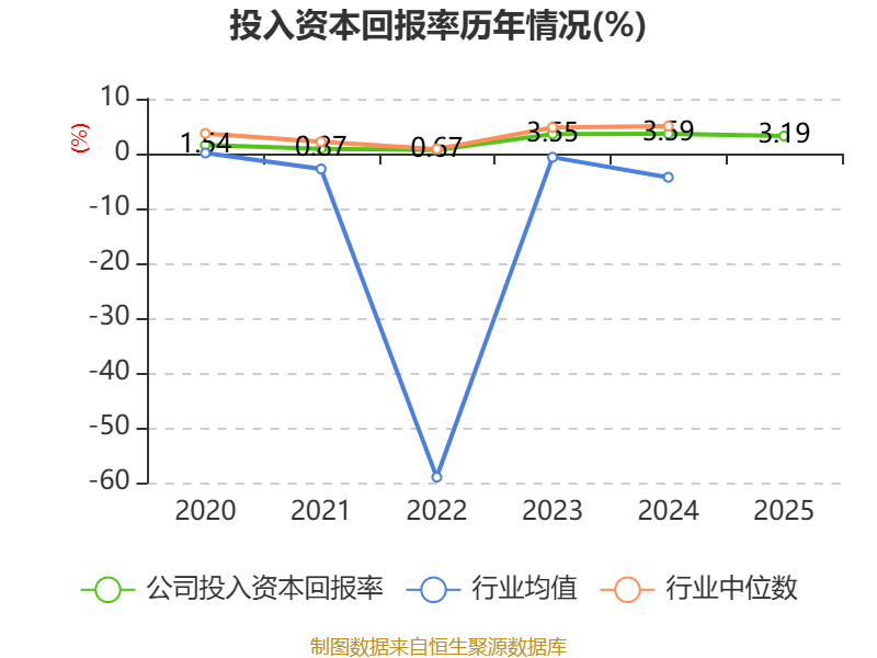 数据显示,2025年公司加权平均净资产收益率为5.89%,较上年同期上升0.46个百分点。公司2025年投入资本回报率为3.19%,较上年同期下降0.4个百分点。