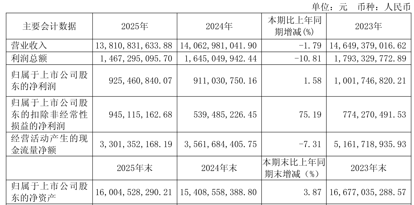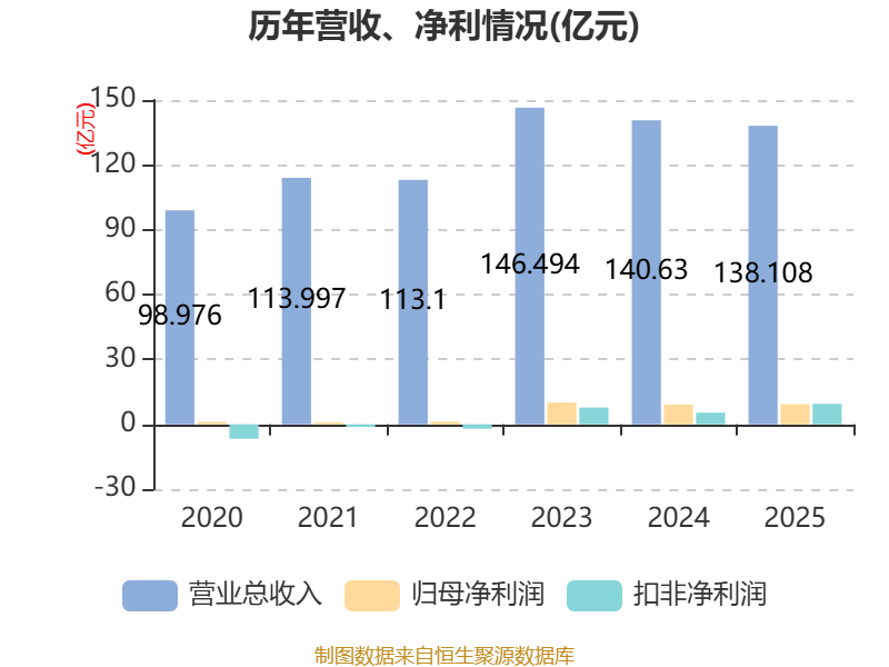 中证智能财讯锦江酒店(600754)3月28日披露2025年年度报告。2025年,公司实现营业总收入138.11亿元,同比下降1.79%;归母净利润9.25亿元,同比增长1.58%;扣非净利润9.45亿元,同比增长75.19%;经营活动产生的现金流量净额为33.01亿元,同比下降7.31%;报告期内,锦江酒店基本每股收益为0.87元,加权平均净资产收益率为5.89%。公司2025年度分配预案为:拟向全体股东每10股派现5.1元(含税)。
