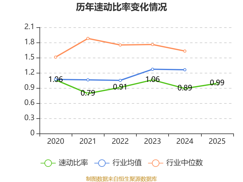 2025年,公司流动比率为1,速动比率为0.99。