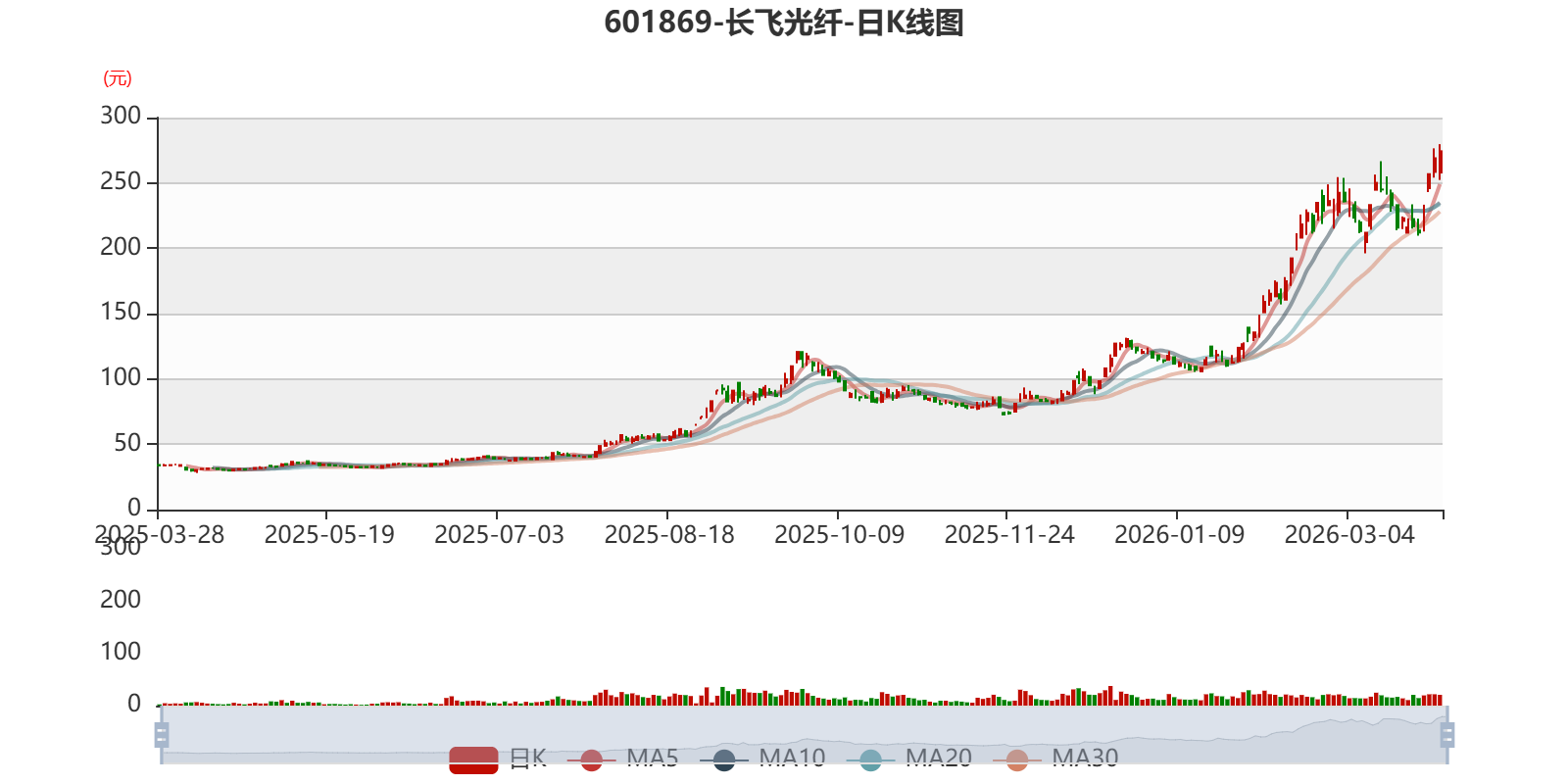以3月27日收盘价计算,长飞光纤目前市盈率(TTM)约为279.04倍,市净率(LF)约16.45倍,市销率(TTM)约15.93倍。
