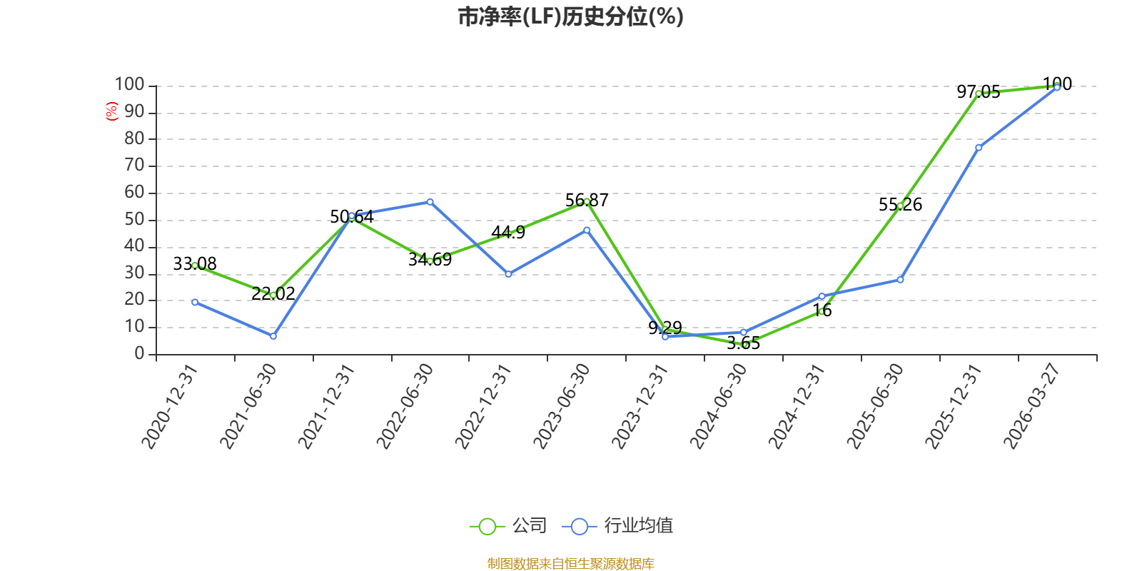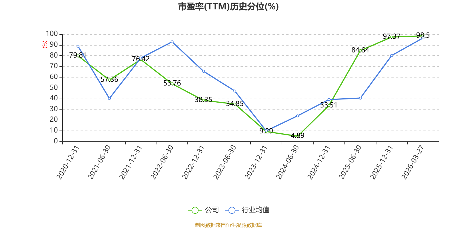 市盈率、市净率为负时,不显示当期分位数,会导致折线图中断。