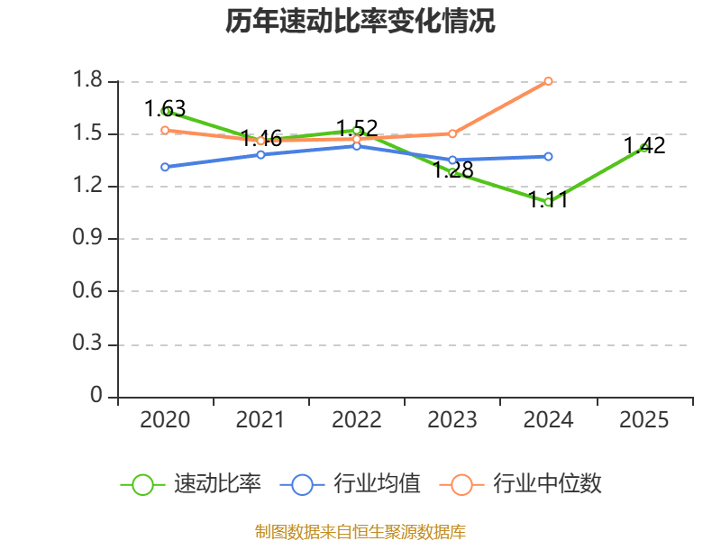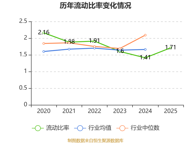2025年,公司流动比率为1.71,速动比率为1.42。