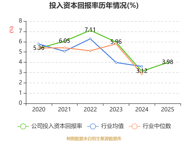 数据显示,2025年公司加权平均净资产收益率为6.92%,较上年同期上升0.98个百分点。公司2025年投入资本回报率为3.98%,较上年同期上升0.86个百分点。