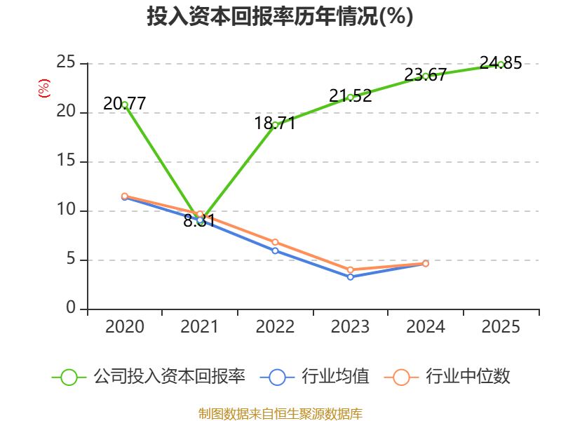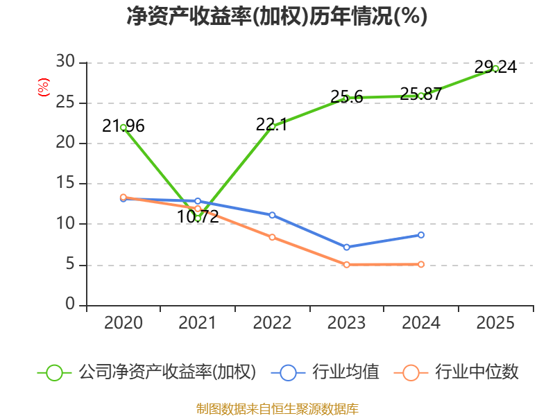 数据显示,2025年公司加权平均净资产收益率为29.24%,较上年同期上升3.37个百分点。公司2025年投入资本回报率为24.85%,较上年同期上升1.18个百分点。