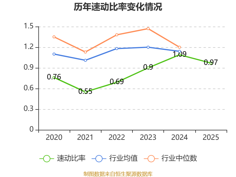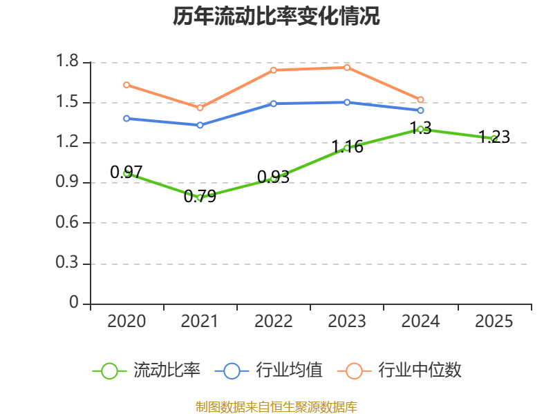 2025年,公司流动比率为1.23,速动比率为0.97。
