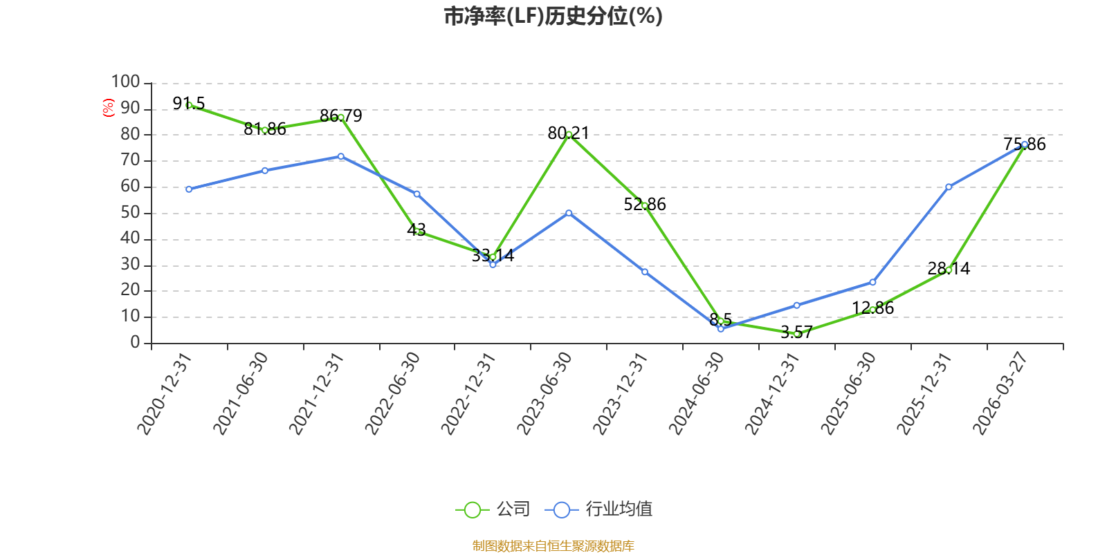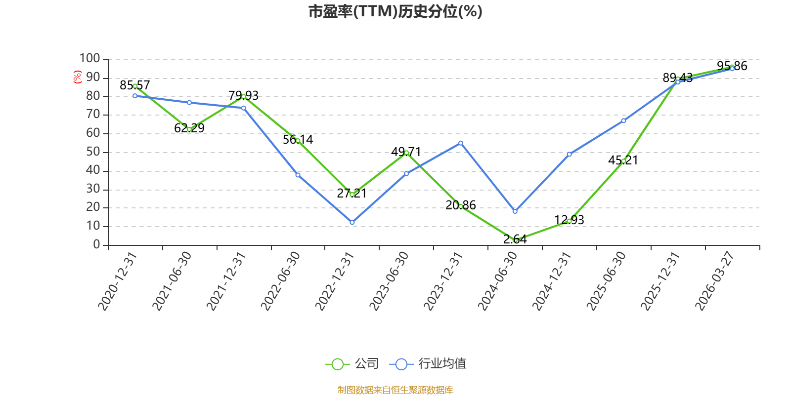 市盈率、市净率为负时,不显示当期分位数,会导致折线图中断。