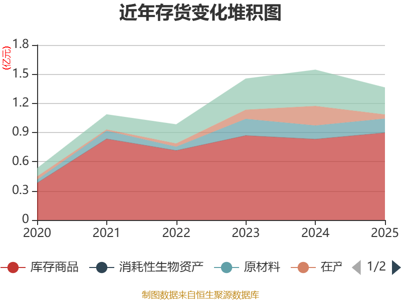 从存货变动来看,截至2025年末,公司存货账面价值为1.36亿元,占净资产的4.35%,较上年末减少1825.33万元。其中,存货跌价准备为134.55万元,计提比例为0.98%。