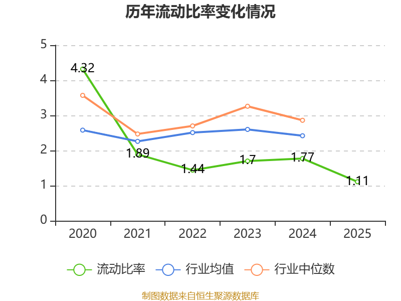 2025年,公司流动比率为1.11,速动比率为1.04。
