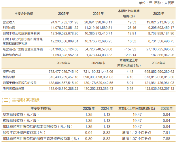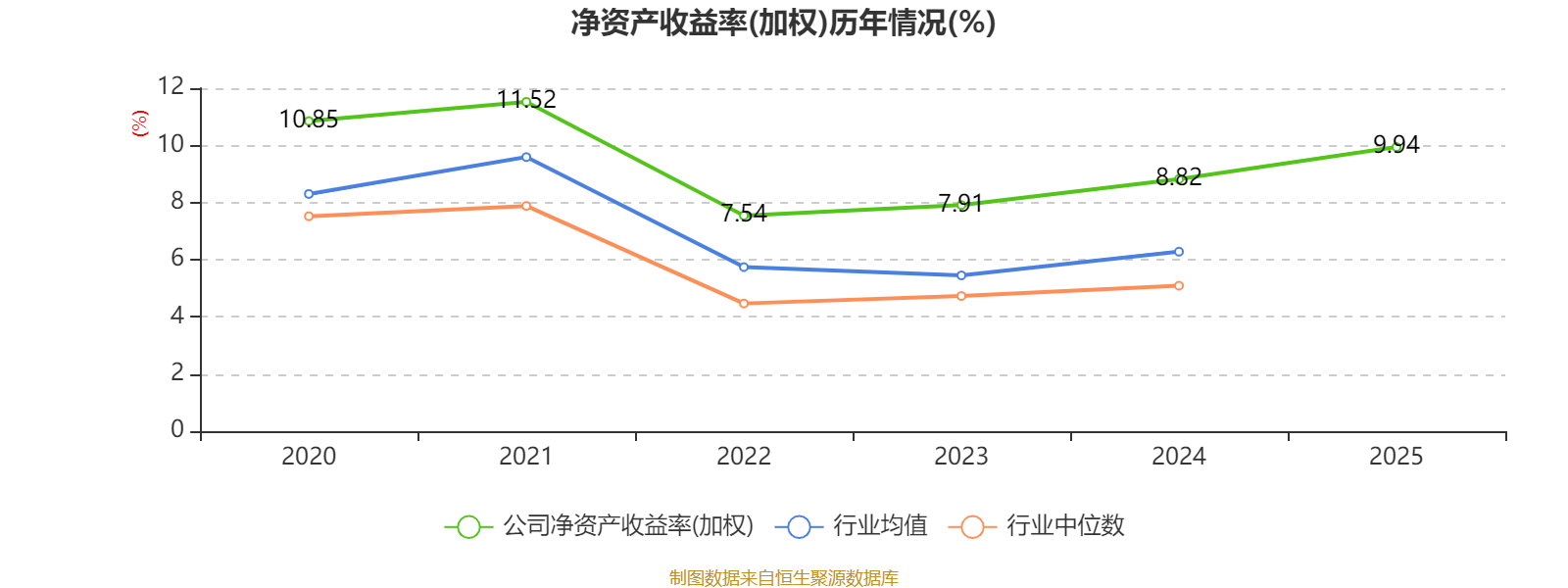 数据显示,2025年公司加权平均净资产收益率为9.94%,较上年同期上升1.12个百分点。