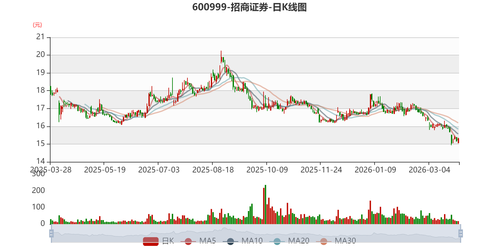 以3月27日收盘价计算,招商证券目前市盈率(TTM)约为10.78倍,市净率(LF)约0.96倍,市销率(TTM)约5.33倍。