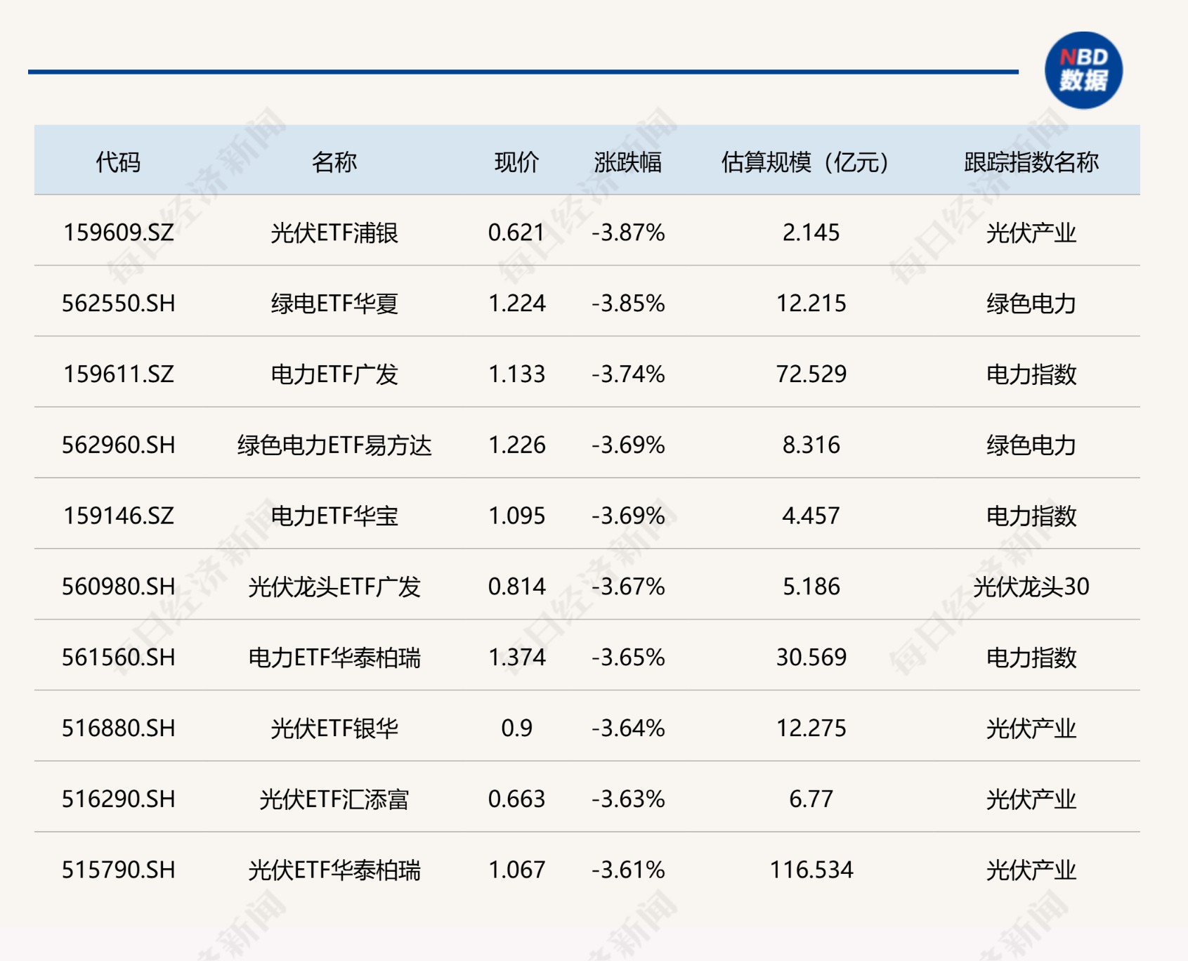 下跌方面,光伏、绿电相关ETF跌超3%。