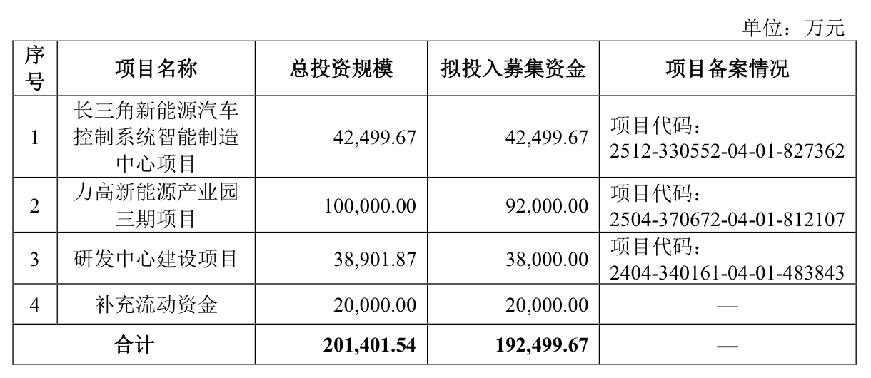 在如此形势下,力高新能计划募资约19.25亿元,其中绝大部分投向“长三角新能源汽车控制系统智能制造中心项目”和“力高新能源产业园三期项目”。按照规划,这两个项目将分别新增24条和30条SMT生产线及配套设施,项目建设期分布为24个月和36个月,前者将新增576万套BMS及其他汽车电子系统,后者将新增720万套BMS的产能。