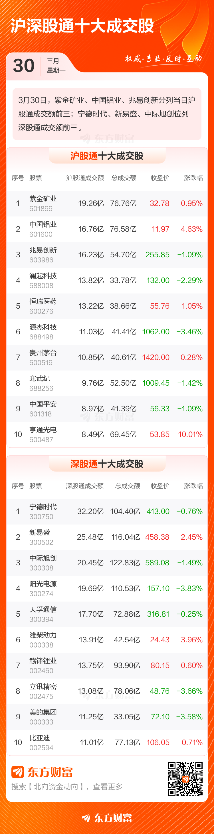 3月30日北向资金最新动向(附十大成交股)