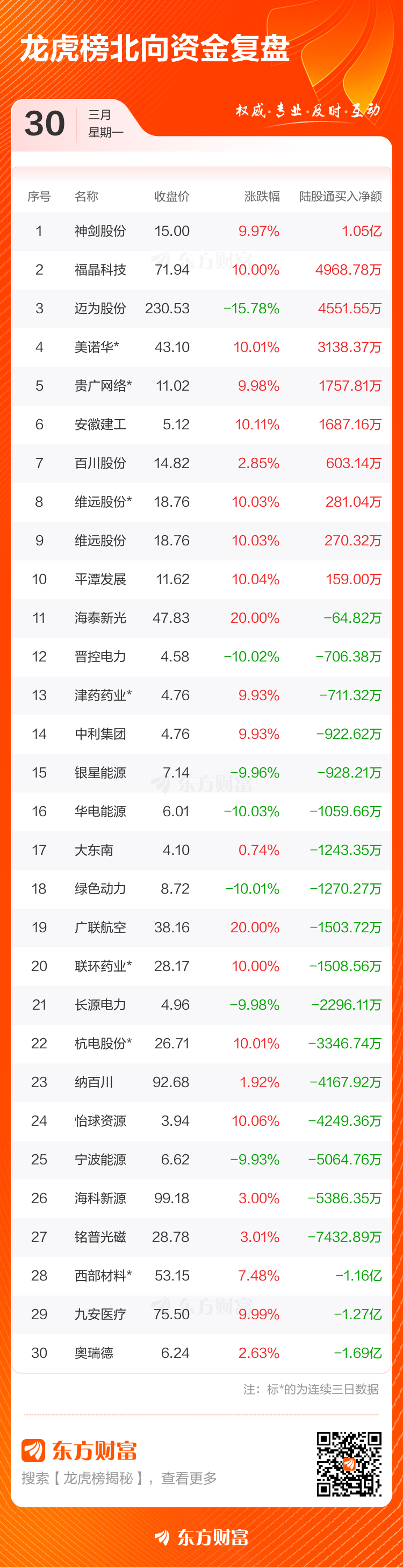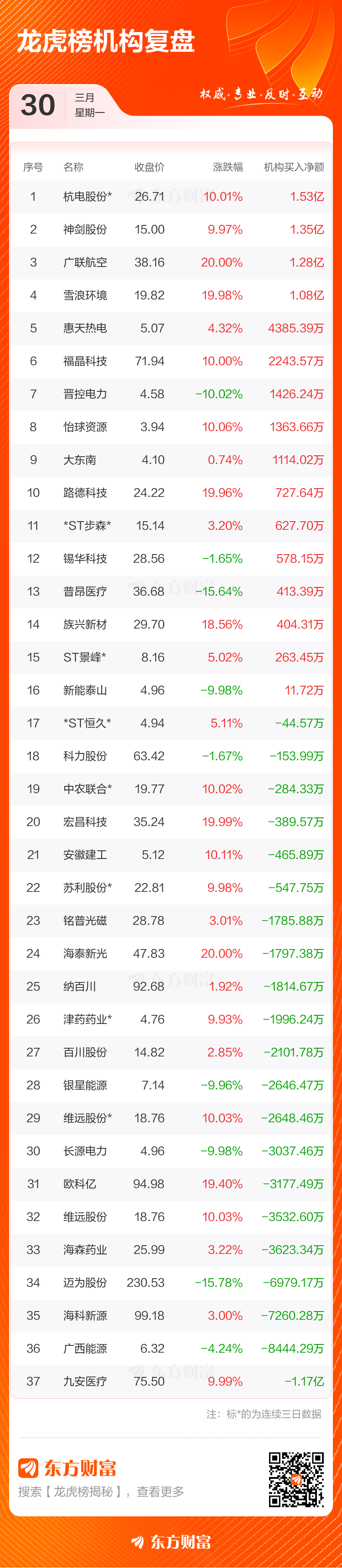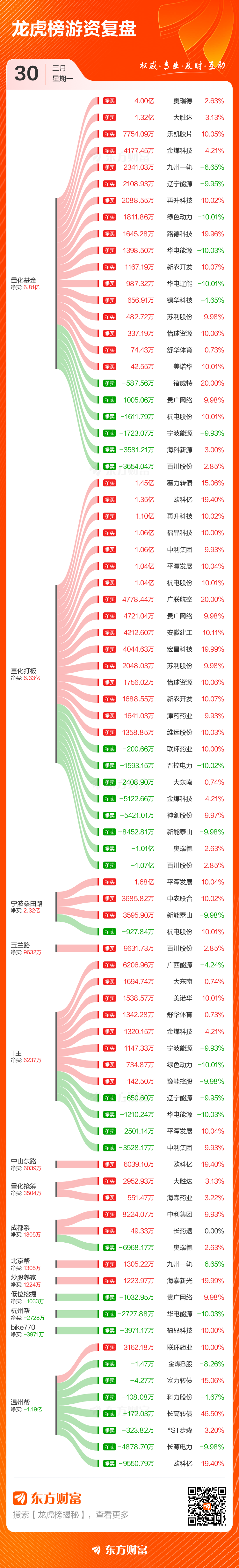 3月30日共有61只个股(含2只可转债)上榜龙虎榜,总上榜成交额202.54亿元。上榜个股中净买入额最高的是平潭发展,金额为7.37亿元。