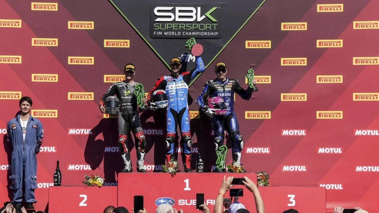 3月28日,站在世界超级摩托车锦标赛(WSBK)葡萄牙站的领奖台上,国产摩托车企业张雪机车厂队车手Valentin Debise驾驶张雪820RR-RS赛车一骑绝尘,在正赛中以近4秒的绝对优势夺冠。