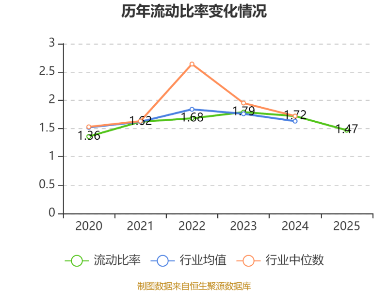 2025年,公司流动比率为1.47,速动比率为0.96。