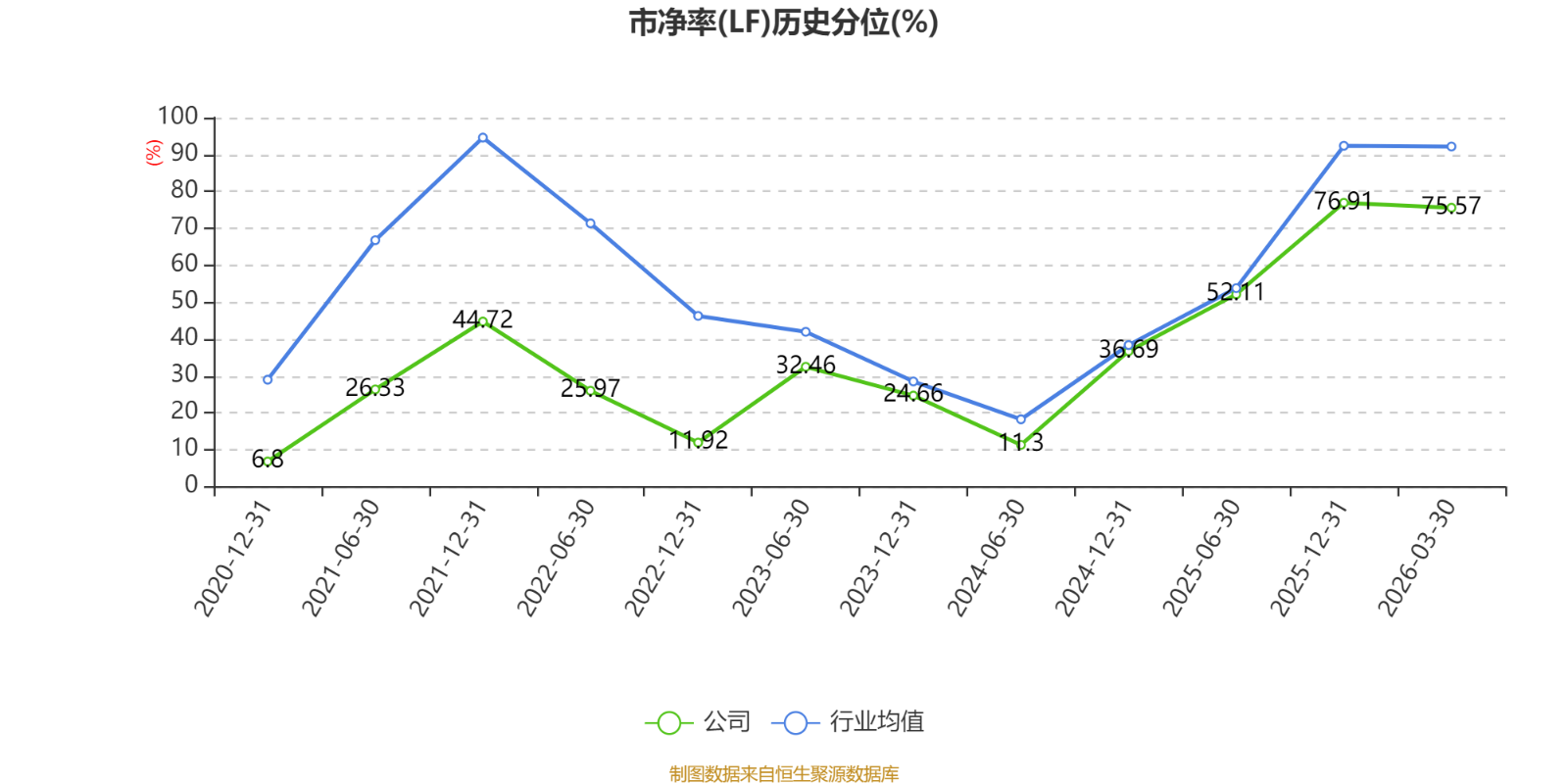 市盈率、市净率为负时,不显示当期分位数,会导致折线图中断。