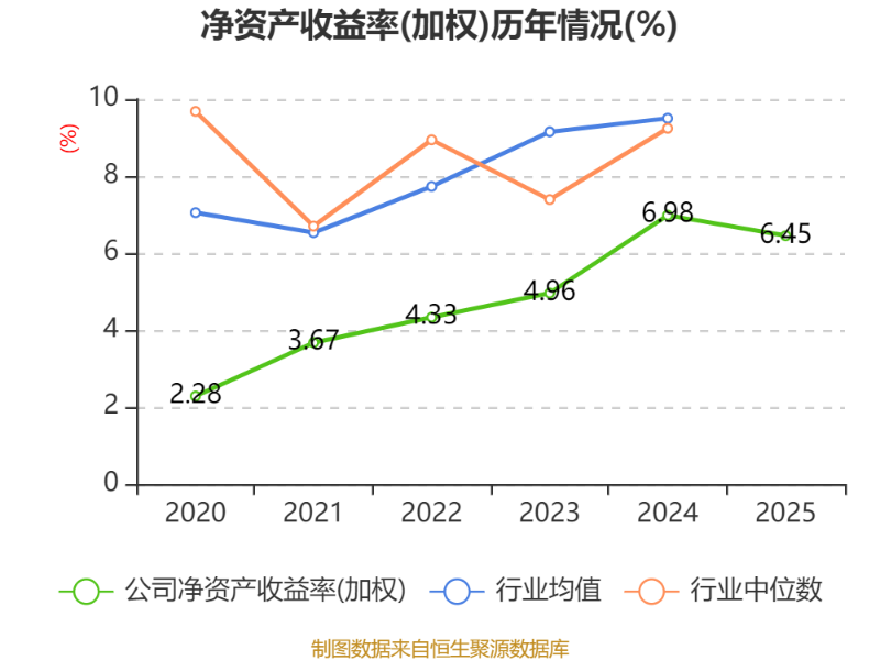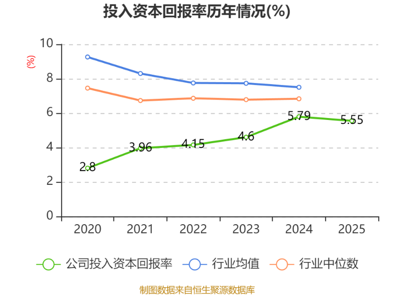 数据显示,2025年公司加权平均净资产收益率为6.45%,较上年同期下降0.53个百分点。公司2025年投入资本回报率为5.55%,较上年同期下降0.24个百分点。