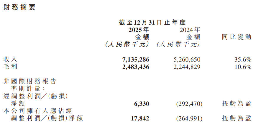 3月30日,通用人工智能企业范式智能技术集团股份有限公司(范式智能,6682.HK)发布2025年度业绩公告,全年总营收71.35亿元,同比(较去年同期)增长35.6%;毛利24.83亿元,同比增长10.6%;净亏损2630万元,同比收窄90.2%;经调归母净利润1784万元,实现扭亏为盈;研发投入23.37亿元,同比增长7.7%。