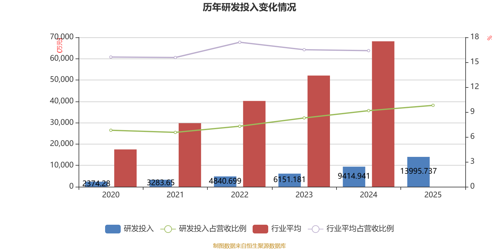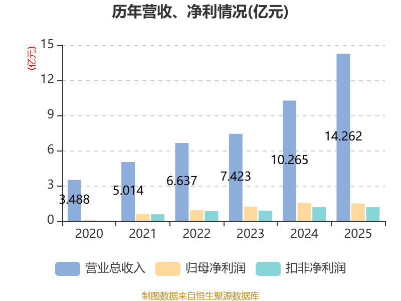 2025年全年,公司研发投入金额为1.4亿元,同比增长48.65%;研发投入占营业收入比例为9.81%,相比上年同期上升0.64个百分点。