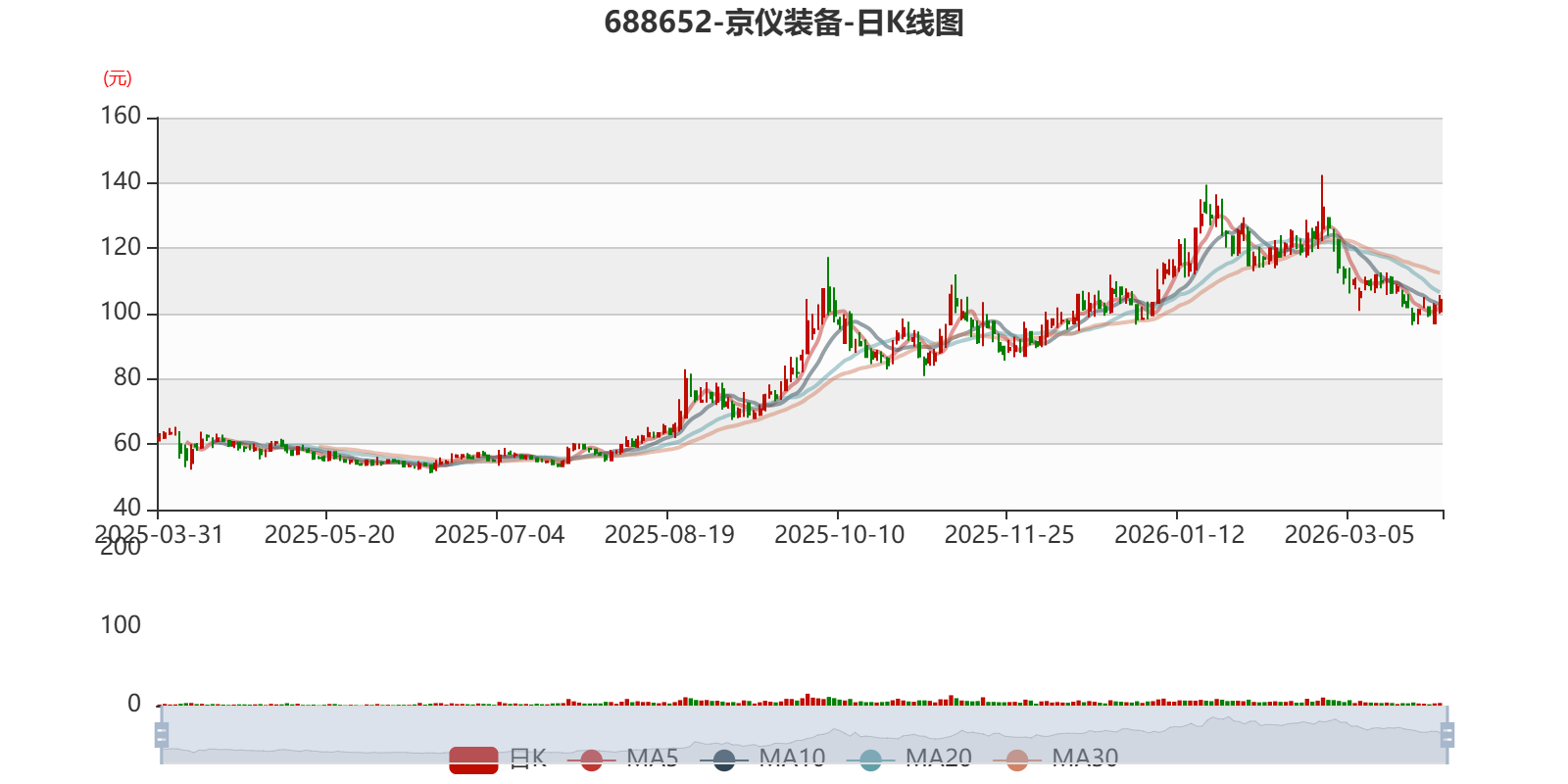 以3月30日收盘价计算,京仪装备目前市盈率(TTM)约为118.34倍,市净率(LF)约7.95倍,市销率(TTM)约12.27倍。