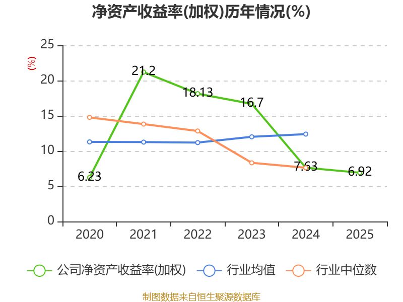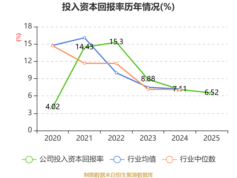数据显示,2025年公司加权平均净资产收益率为6.92%,较上年同期下降0.71个百分点。公司2025年投入资本回报率为6.52%,较上年同期下降0.59个百分点。