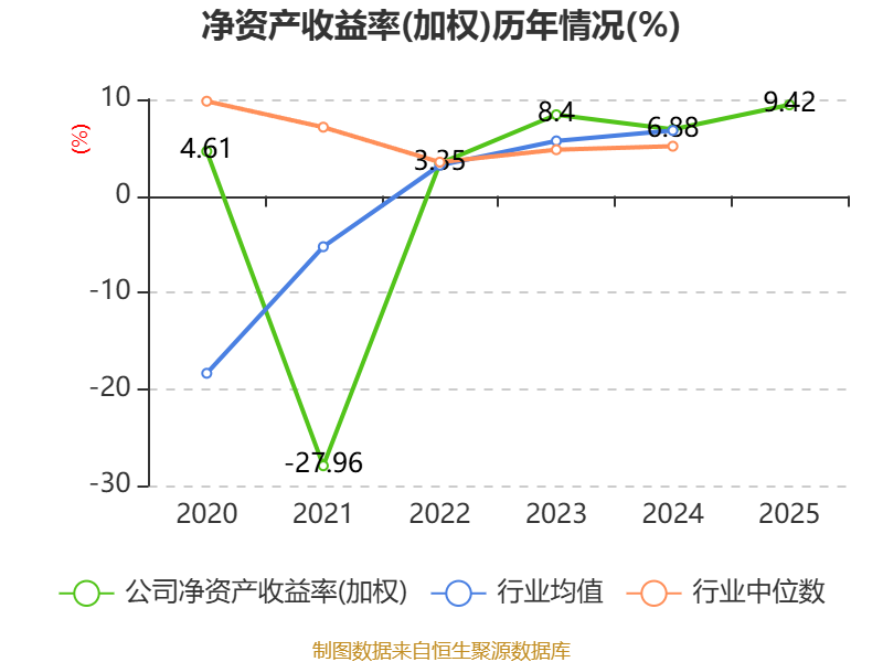 数据显示,2025年公司加权平均净资产收益率为9.42%,较上年同期上升2.54个百分点。公司2025年投入资本回报率为5.1%,较上年同期上升0.33个百分点。