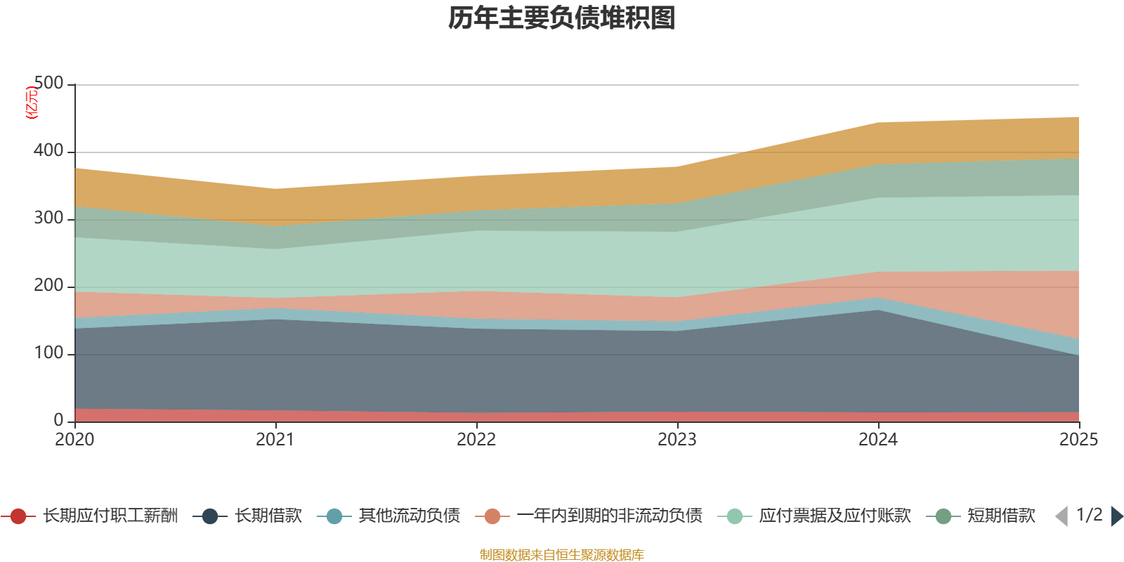 负债重大变化方面,截至2025年末,公司长期借款较上年末减少44.77%,占公司总资产比重下降11.54个百分点;一年内到期的非流动负债较上年末增加163.13%,占公司总资产比重上升8.62个百分点;应付票据及应付账款较上年末增加2.36%,占公司总资产比重下降0.86个百分点;其他流动负债较上年末增加33.83%,占公司总资产比重上升0.7个百分点。