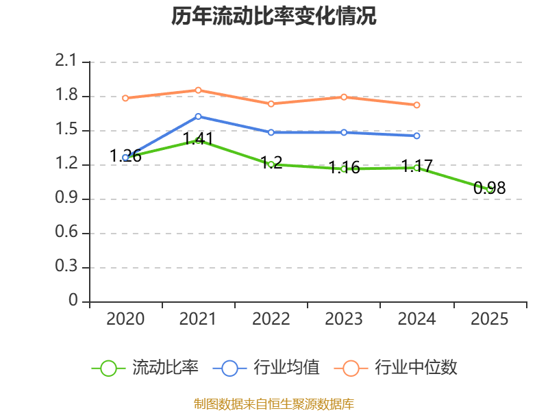 2025年,公司流动比率为0.98,速动比率为0.66。