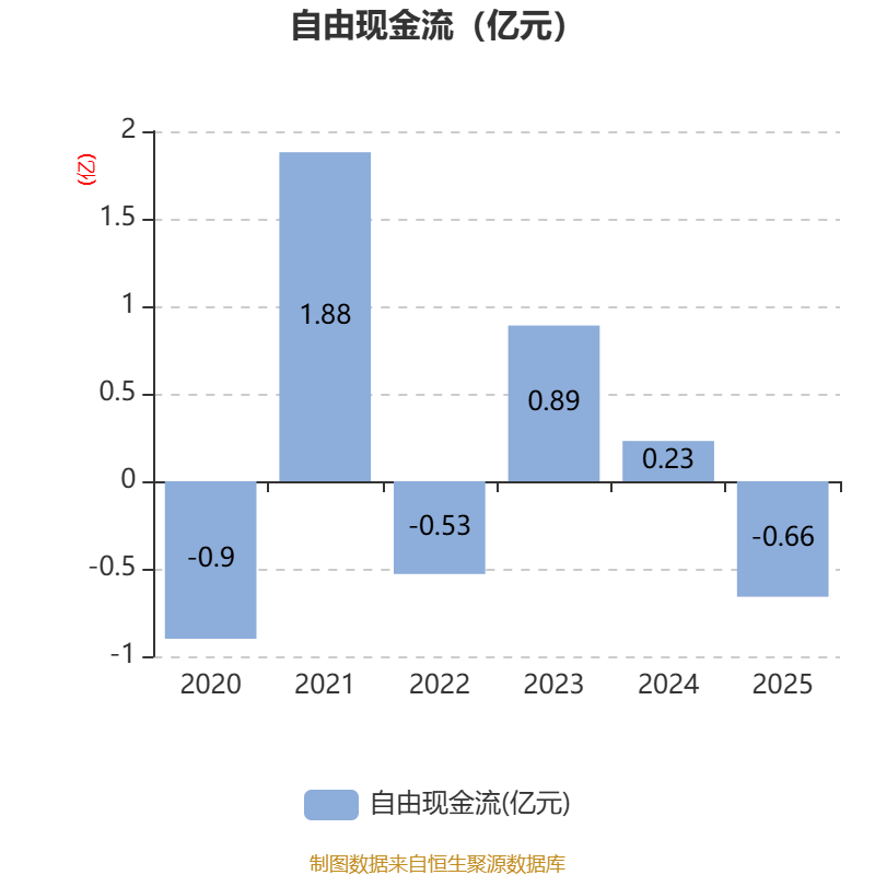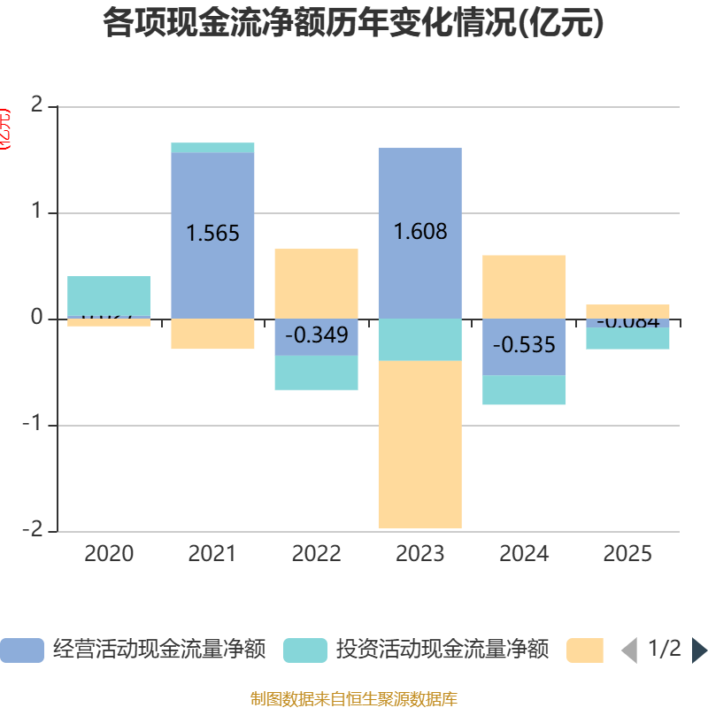 截至2025年,公司经营活动现金流净额为-836.73万元,同比增加4510.86万元;筹资活动现金流净额1327.71万元,同比减少4633万元;投资活动现金流净额-2043.86万元,上年同期为-2745.93万元。