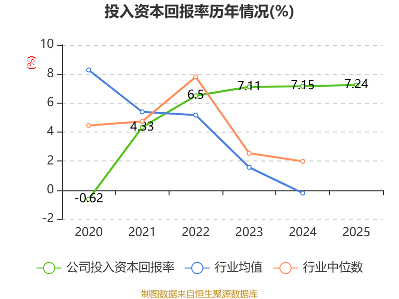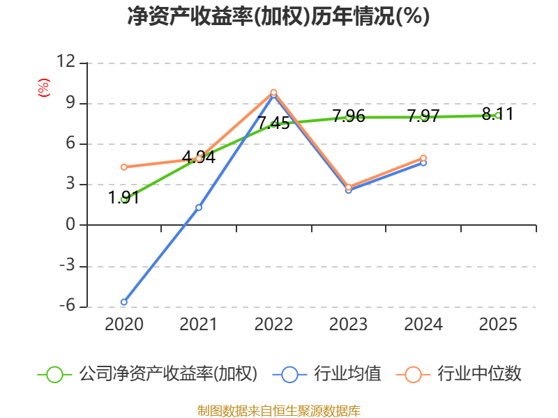 数据显示,2025年公司加权平均净资产收益率为8.11%,较上年同期上升0.14个百分点。公司2025年投入资本回报率为7.24%,较上年同期上升0.09个百分点。