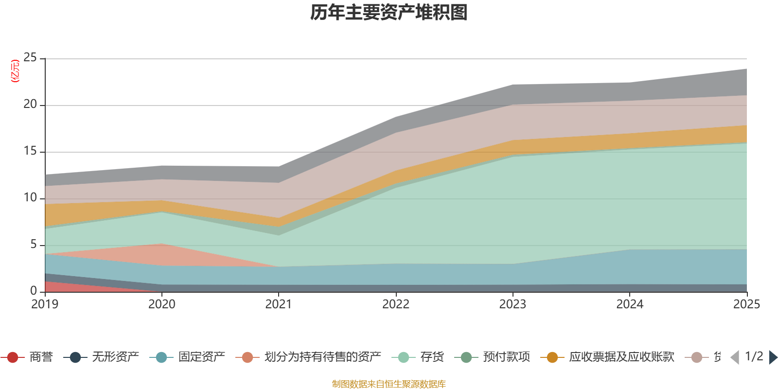 资产重大变化方面,截至2025年末,公司应收款项融资较上年末增加1157.23%,占公司总资产比重上升3.16个百分点;货币资金较上年末减少8.38%,占公司总资产比重下降2.19个百分点;固定资产较上年末增加0.92%,占公司总资产比重下降0.88个百分点;应收票据及应收账款较上年末增加14.54%,占公司总资产比重上升0.53个百分点。
