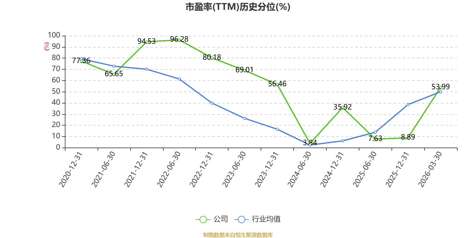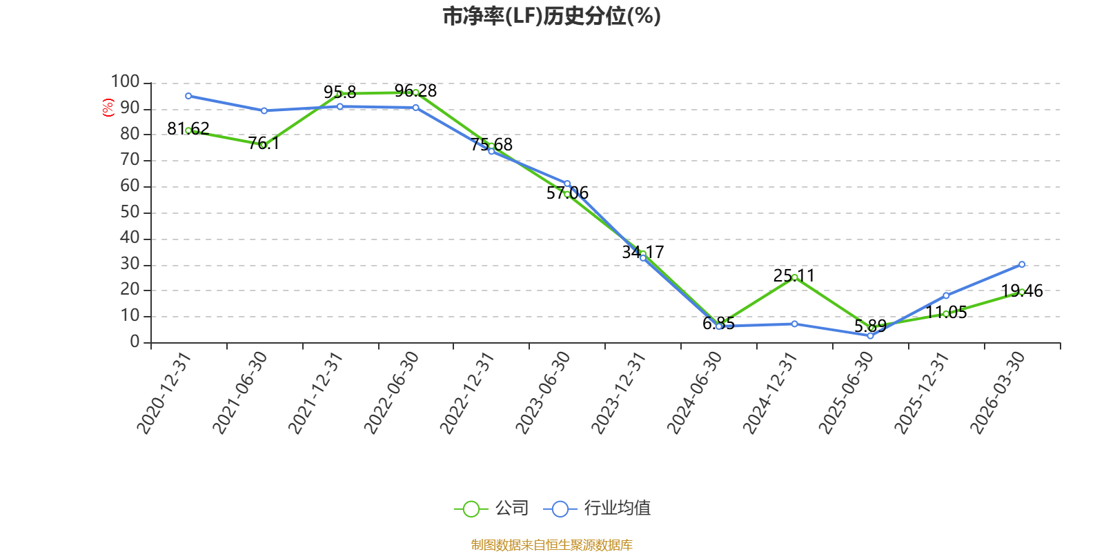 市盈率、市净率为负时,不显示当期分位数,会导致折线图中断。