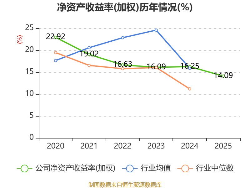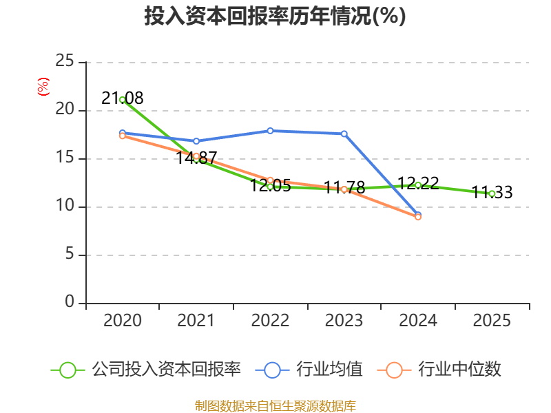 数据显示,2025年公司加权平均净资产收益率为14.09%,较上年同期下降2.16个百分点。公司2025年投入资本回报率为11.33%,较上年同期下降0.89个百分点。