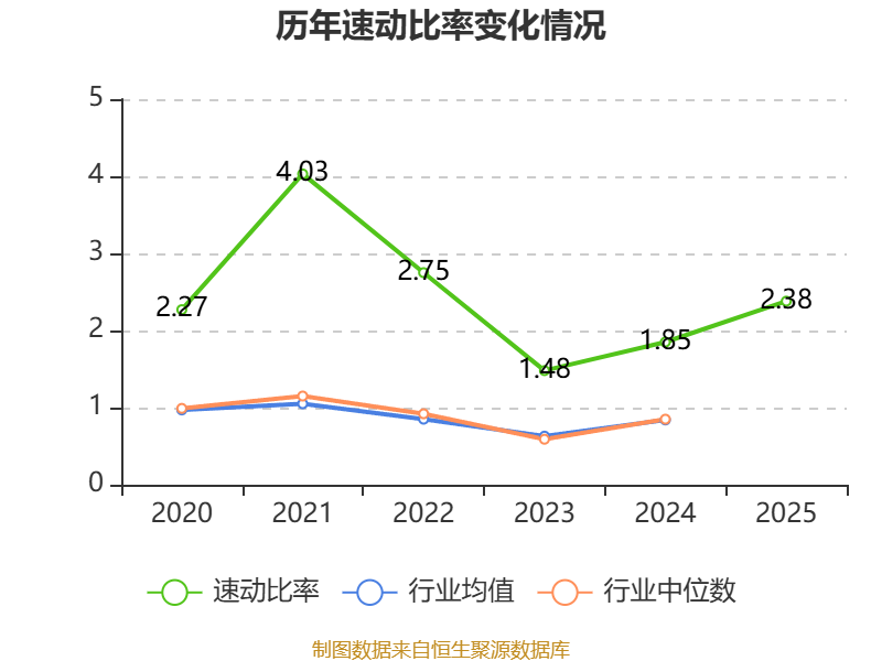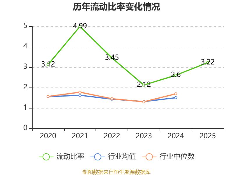 2025年,公司流动比率为3.22,速动比率为2.38。
