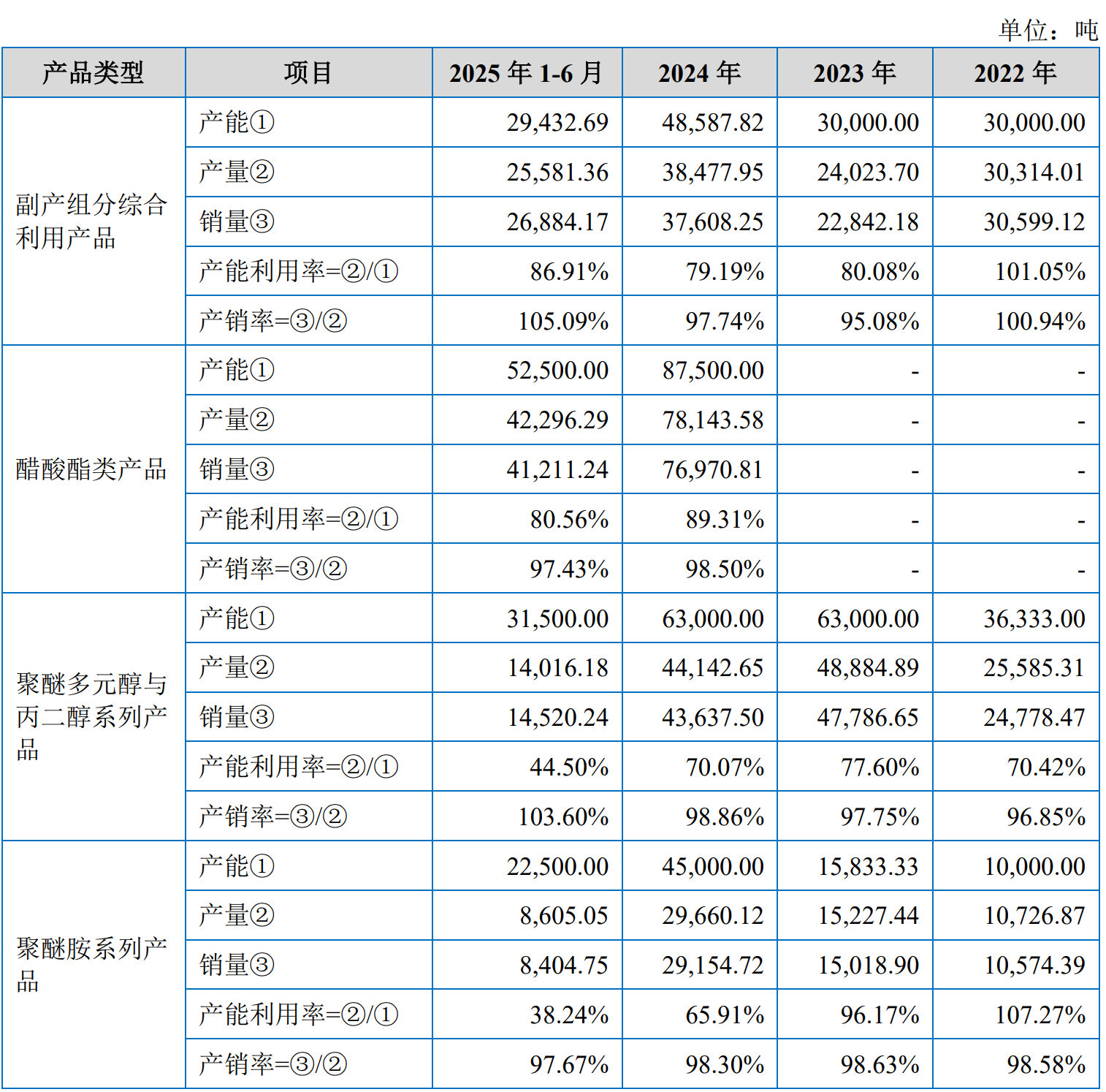 聚醚胺系列:2025年上半年产能2.25万吨,产量仅8605吨,产能利用率38.24%;